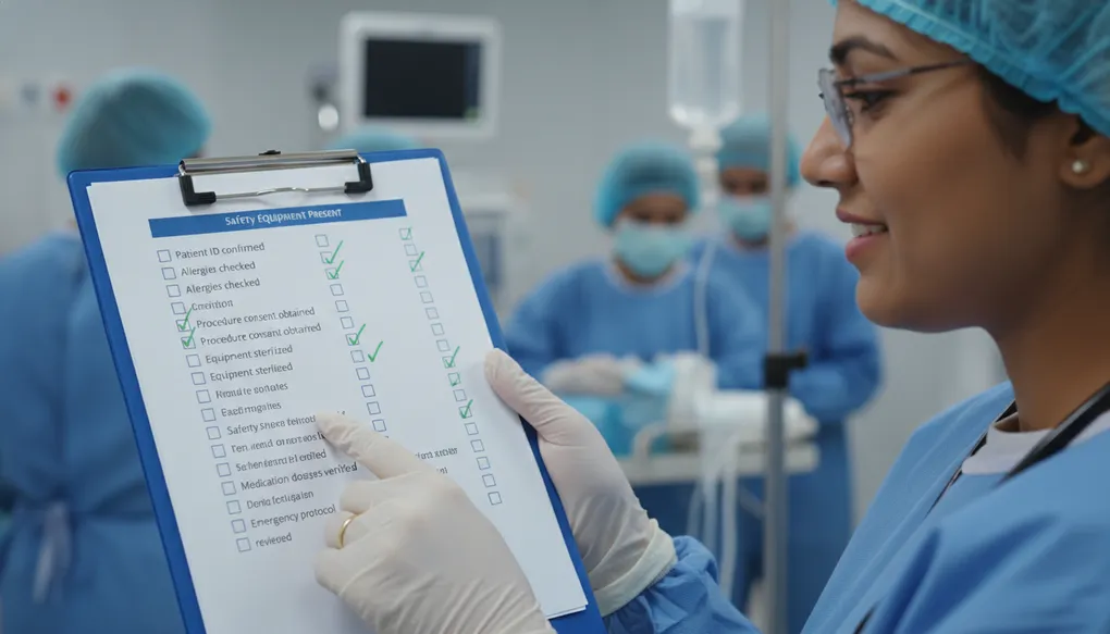 | Pre-procedure verification | Quick tick-boxes | Must complete before starting |